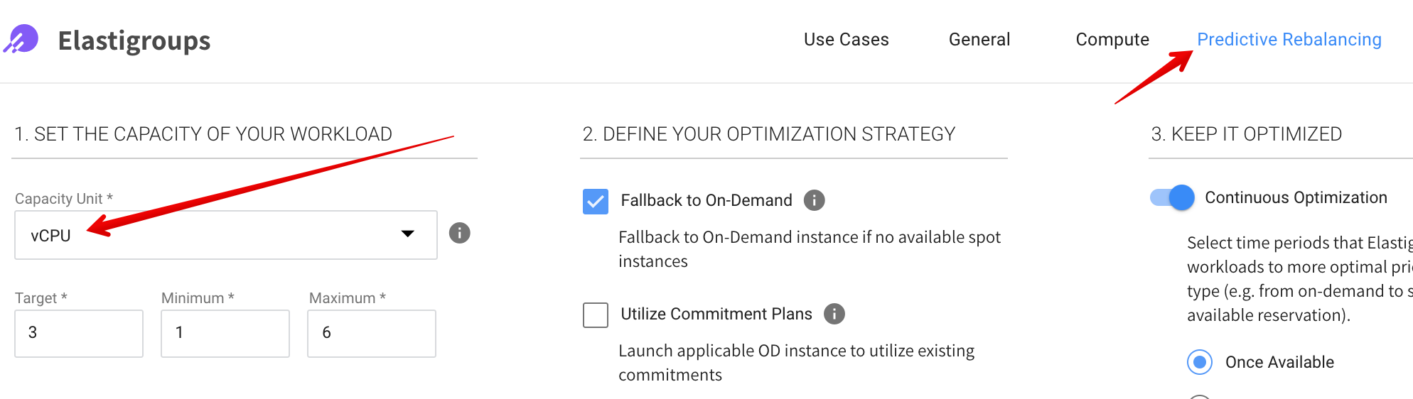 - In the Predictive Rebalancing tab, set Capacity Unit to vCPU.